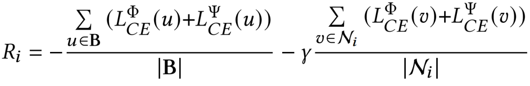 其中𝛾是一个超参数,B是训练集中的一批节点集,动作𝑎𝑖的奖励由两部分组成:首先,该批节点的平均性能作为评估其全局影响的标准;其次,节点𝑖的邻域节点集的平均性能用于模拟其局部效应。