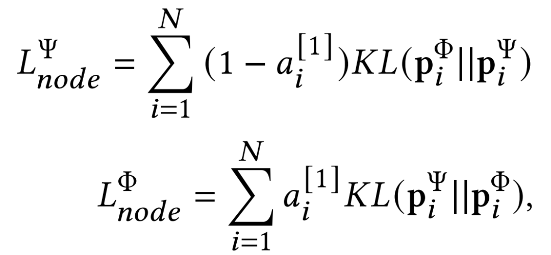 为了在节点级别传递知识,通过KL散度衡量两个GNN模型中同一节点的软标签之间的距离差异,并为每个GNN模型构建并最小化一个新的损失函数。