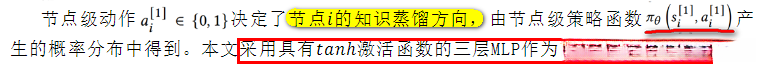 如上图所示,本文采用了两个浅层的图神经网络进行动态交互,从而实现了相互促进。为了解决训练阶段选择不同节点知识蒸馏方向的问题,作者基于分层强化学习策略提出了一种自由方向的知识蒸馏框架,作为知识判断机制,该框架由两个级别的动作选择机制组成:1)级别1,称为节点级动作,用于选择每个节点的蒸馏方向;2)级别2,称为结构级动作,用于选择通过节点级动作生成的局部结构中的传播节点。