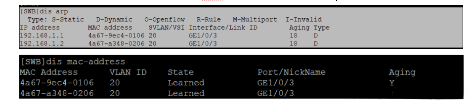 [SWB-Vlan-interface20]local-proxy-arp enable