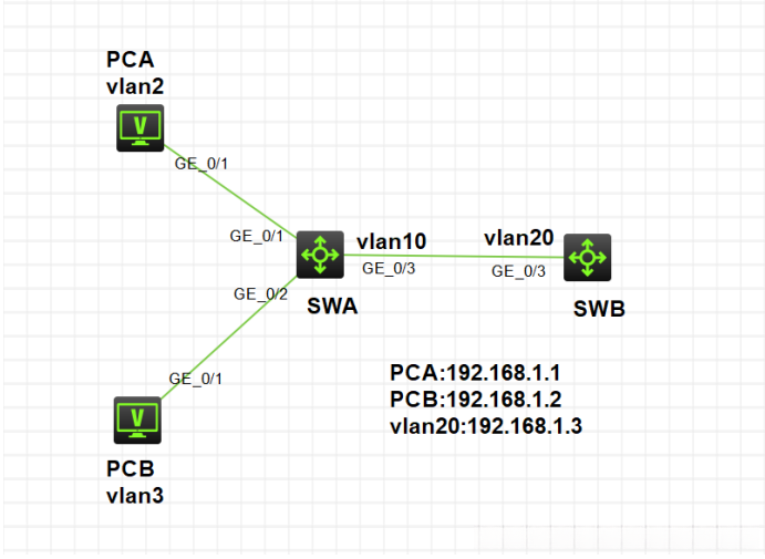 这时对于SWB来说,PCA,PCB相当于在vlan20内,可以学习到它们的mac地址。