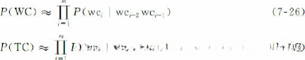 模型(7-25)由四部分组成,分别称之为:词形上下文模型P(WC)、词性上下文模型P(TC)、实体词形模型P(W|WC)和实体词性模型P(T|TC)。实体词形模型和实体词性模型统称为实体模型。以下分别介绍这些模型。