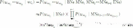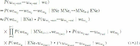 词形和词性混合的汉语命名实体识别模型结合了词形特征模型和词性特征模型的优点,可以描述成下面式子的形式: