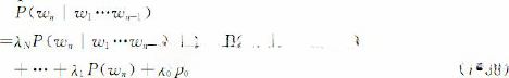 尽管使用了这样大规模的训练语料,数据稀疏问题还是非常严重。为此,吴友政采用了Back-off数据平滑方法,并引入逃逸概率计算权值,如下式所示: