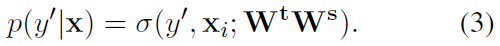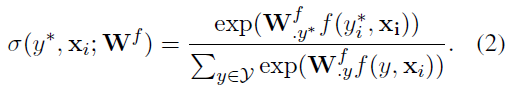 尽管双层神经网络能够识别目标NE类型,但它仍然存在两个缺点。首先,与CRF不同,它不包括标签转换矩阵。其次,如果域差异很大,则双层神经网络的能力有限。如果我们以紧凑的方式重写双层架构,我们将获得: