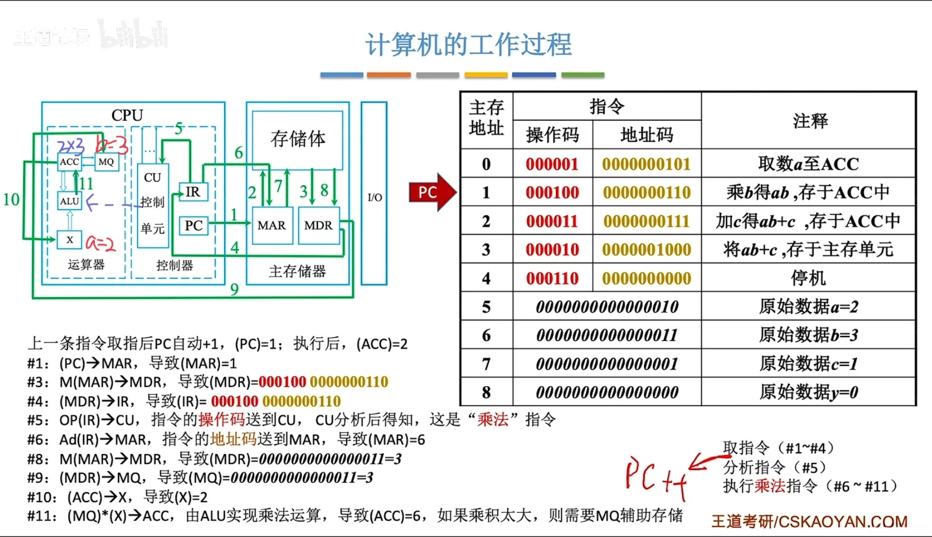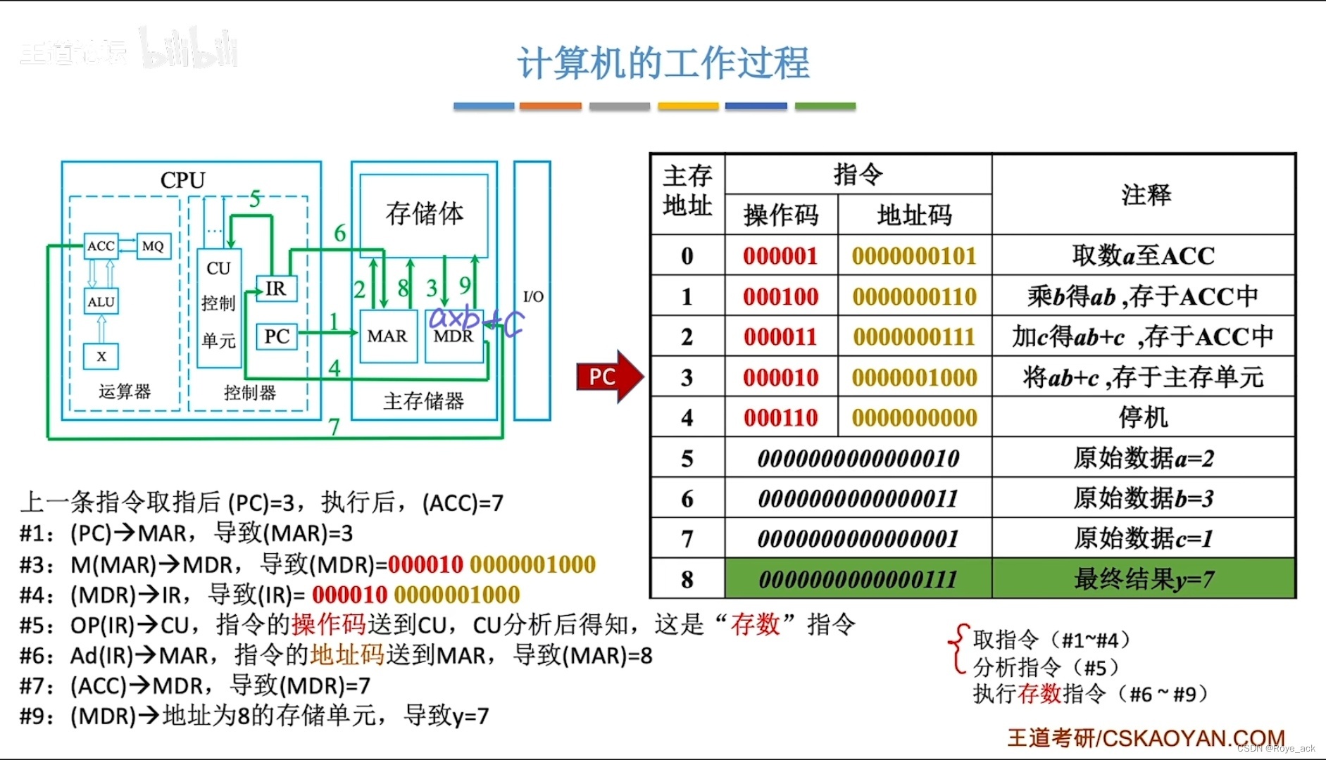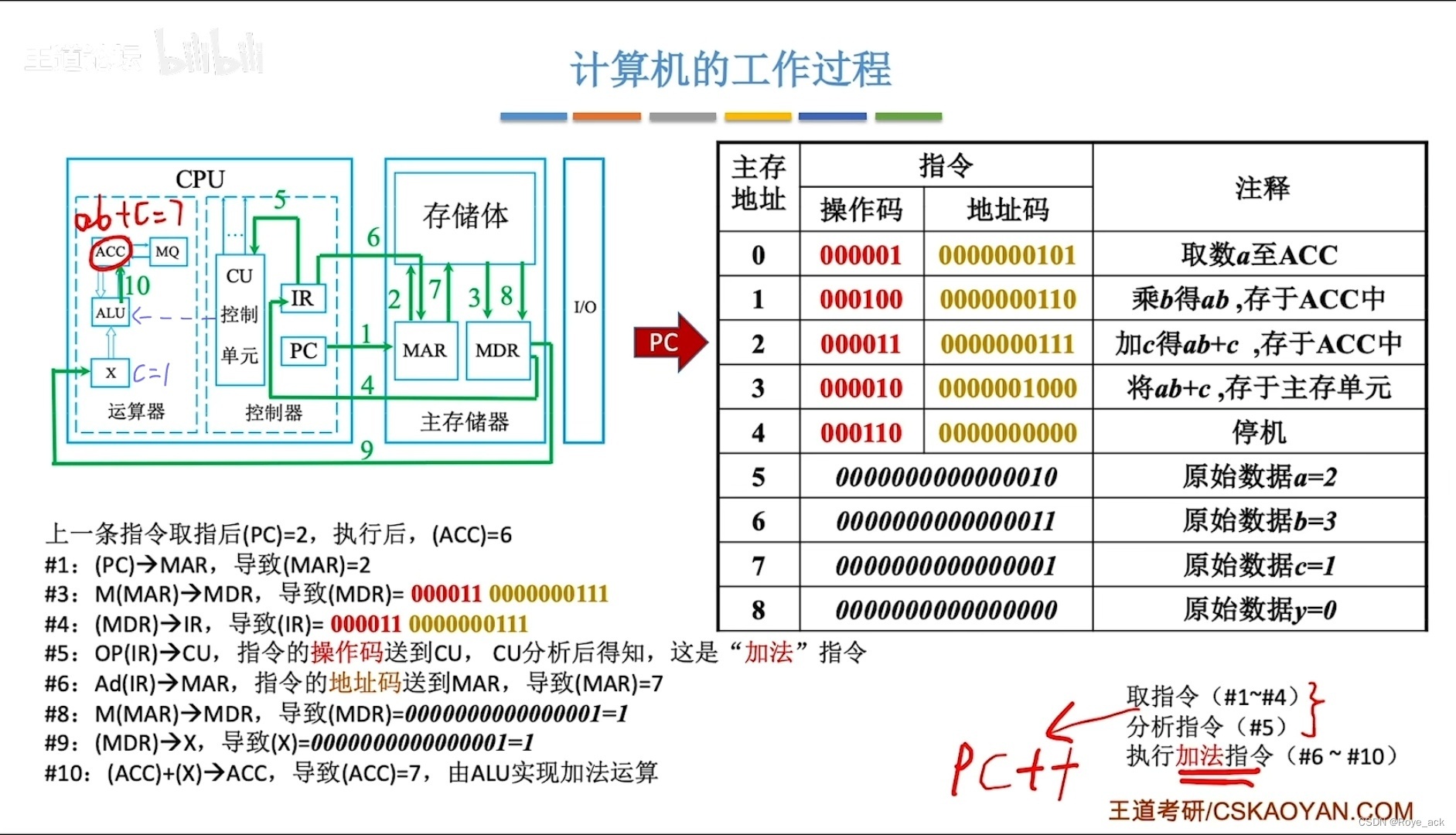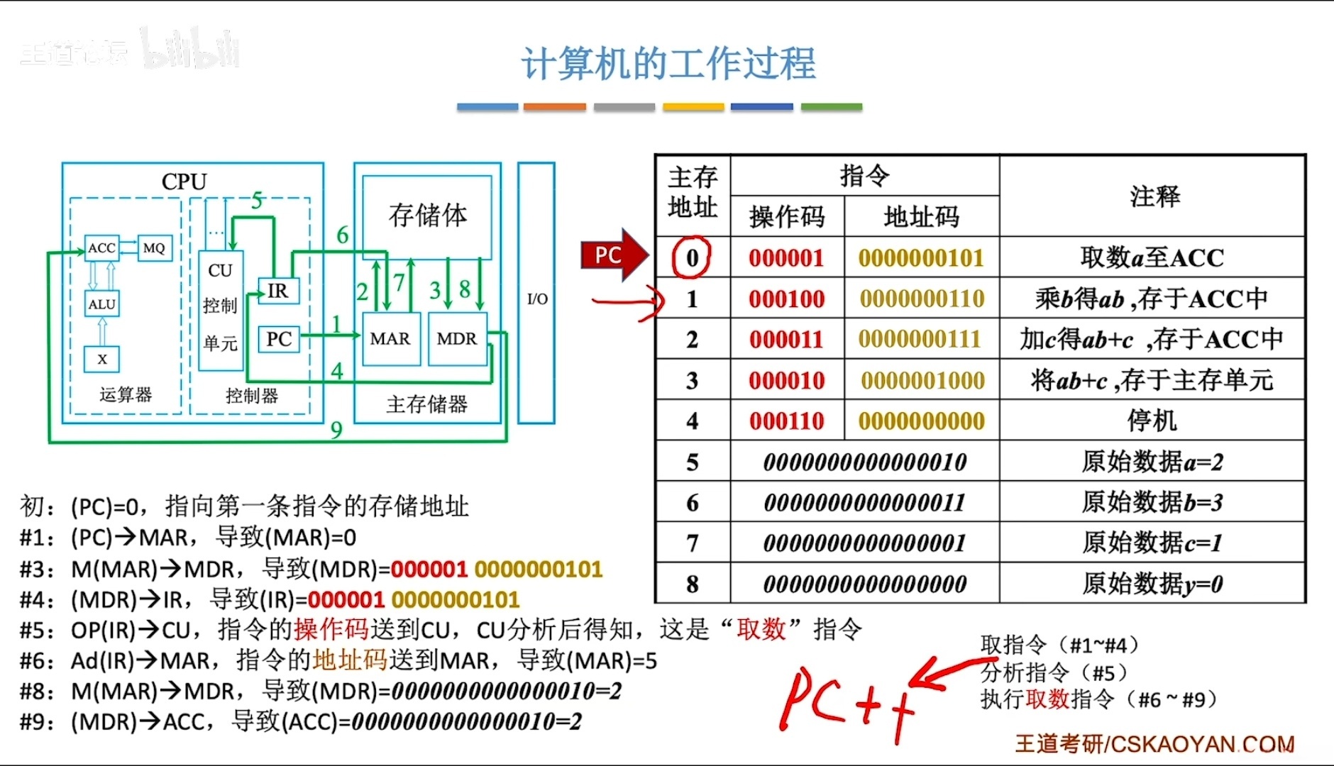 - PC存放下一条指令的地址 ——> MAR(存放欲访问的存储单元地址)