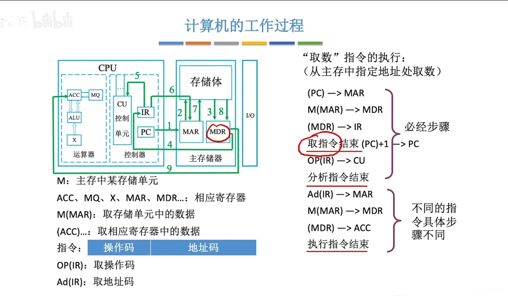 - MDR将指令 ——> IR(存放当前执行的指令)