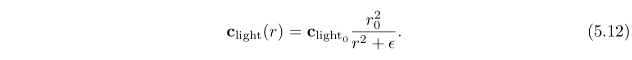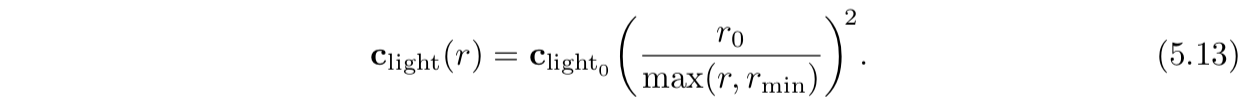 第一个问题发生在相对较小的距离处,随着r趋向于0,Clight的值会增加到无限大,随着r为0时,将得到一个除以0的奇点,为了解决这个问题,一种常见的做法是在分母增加一个小值ε: