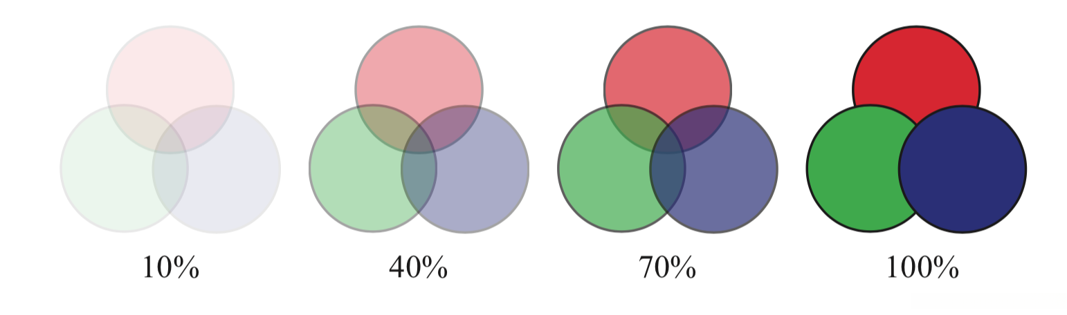 图 5.37 随着不透明度的增加,物体的顺序变得越来越重要。