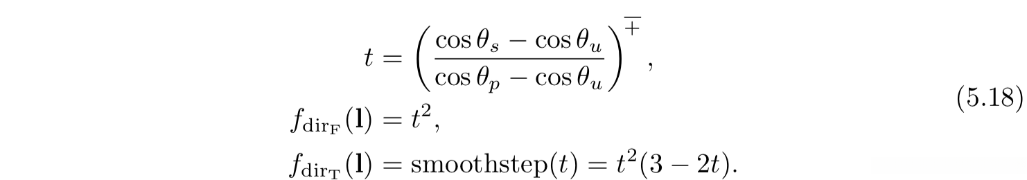 聚光灯虽然有各种方向衰减函数,但是都类似。例如Frostbite游戏引擎的衰减函数 fdirF (l)以及在浏览器图形库three.js中用到的衰减函数 fdirF (l)。