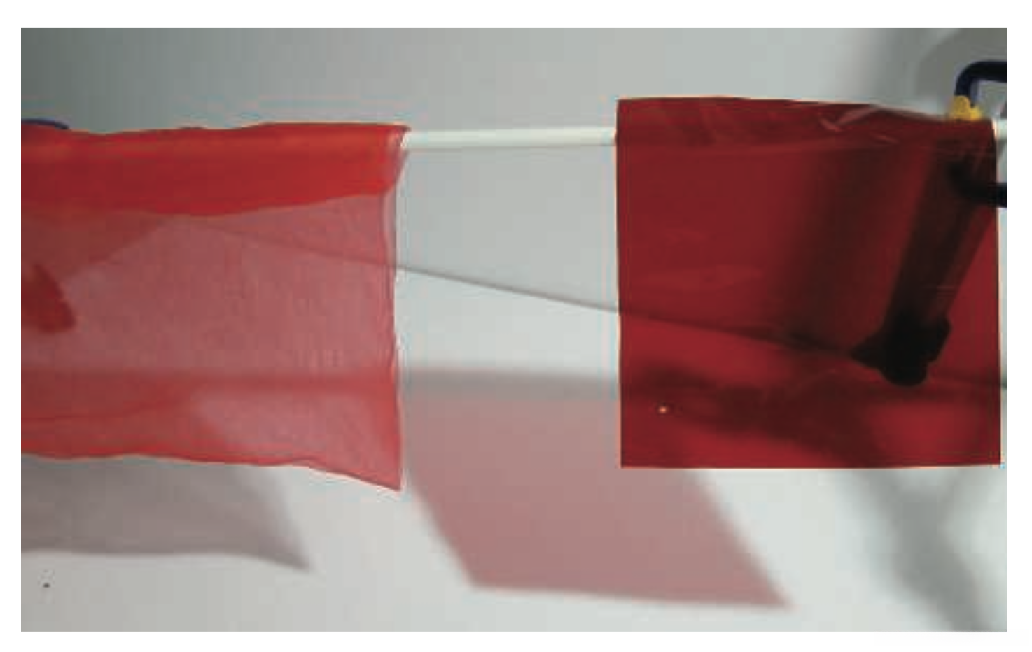 图 5.32 一个红色的织物和一个红色塑料透明物体,具有不同的透明效果,注意,阴影也不同。