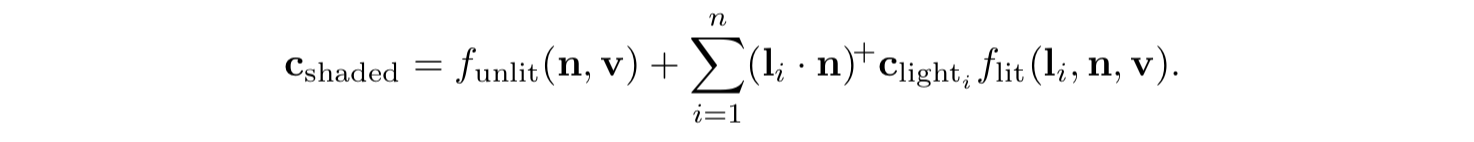 现在我们已经定义好了着色模型的全部输入,接下来可以看下着色模型的数学定义: