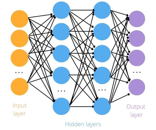 例如,我们可以把一幅图像切分成图像块,输入到神经网络的第一层。在第一层的每一个神经元都把数据传递到第二层。第二层的神经元也是完成类似的工作,把数据传递到第三层,以此类推,直到最后一层,然后生成结果。
