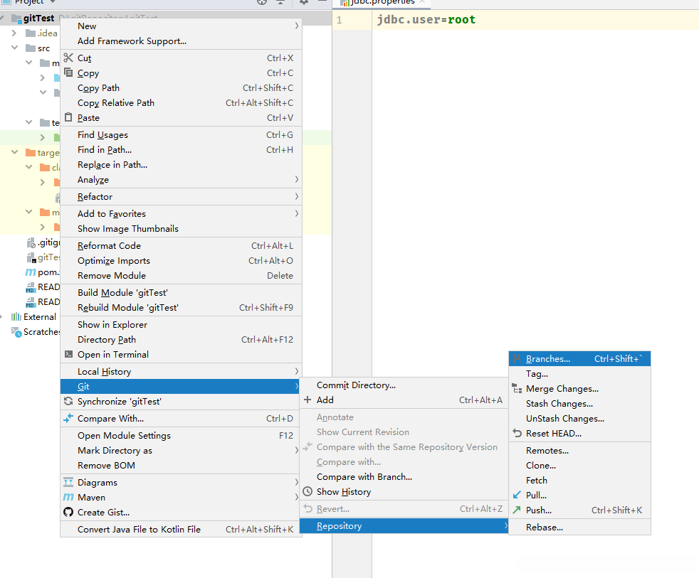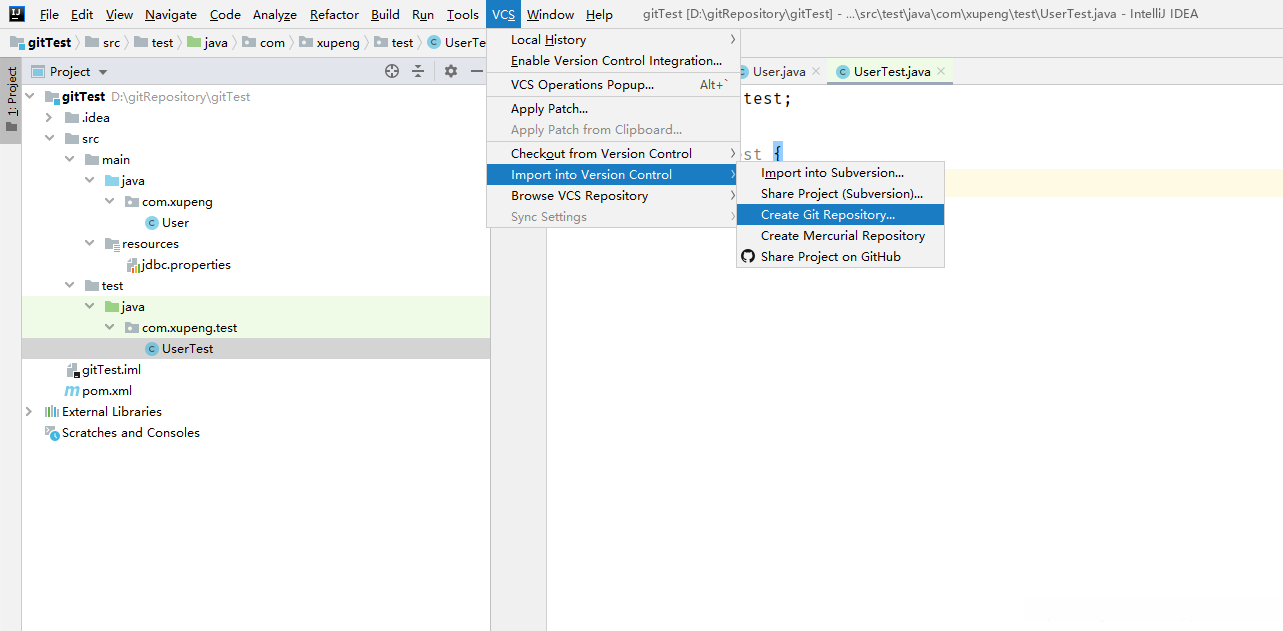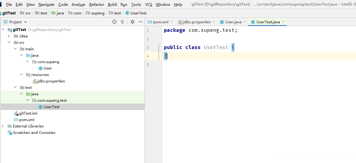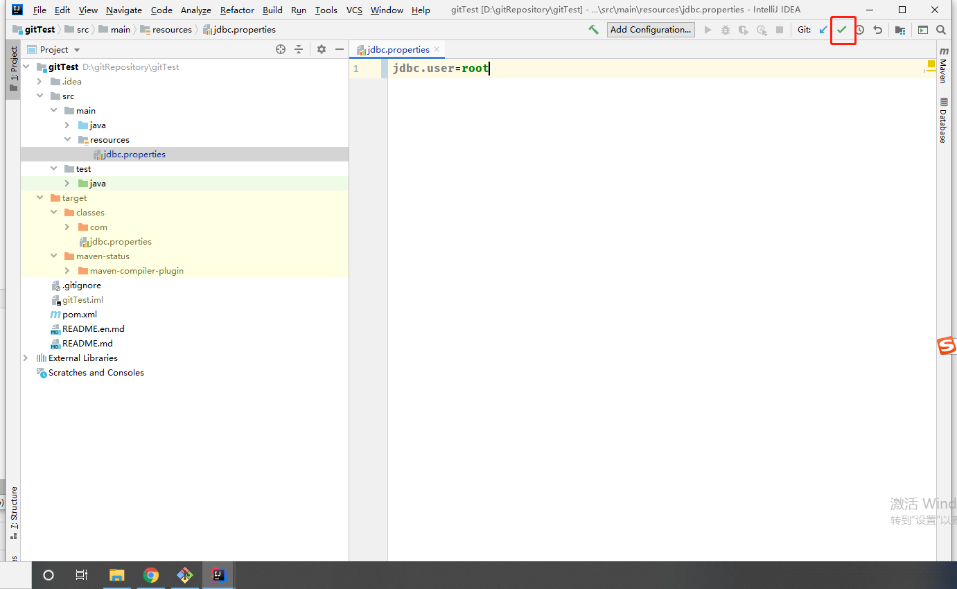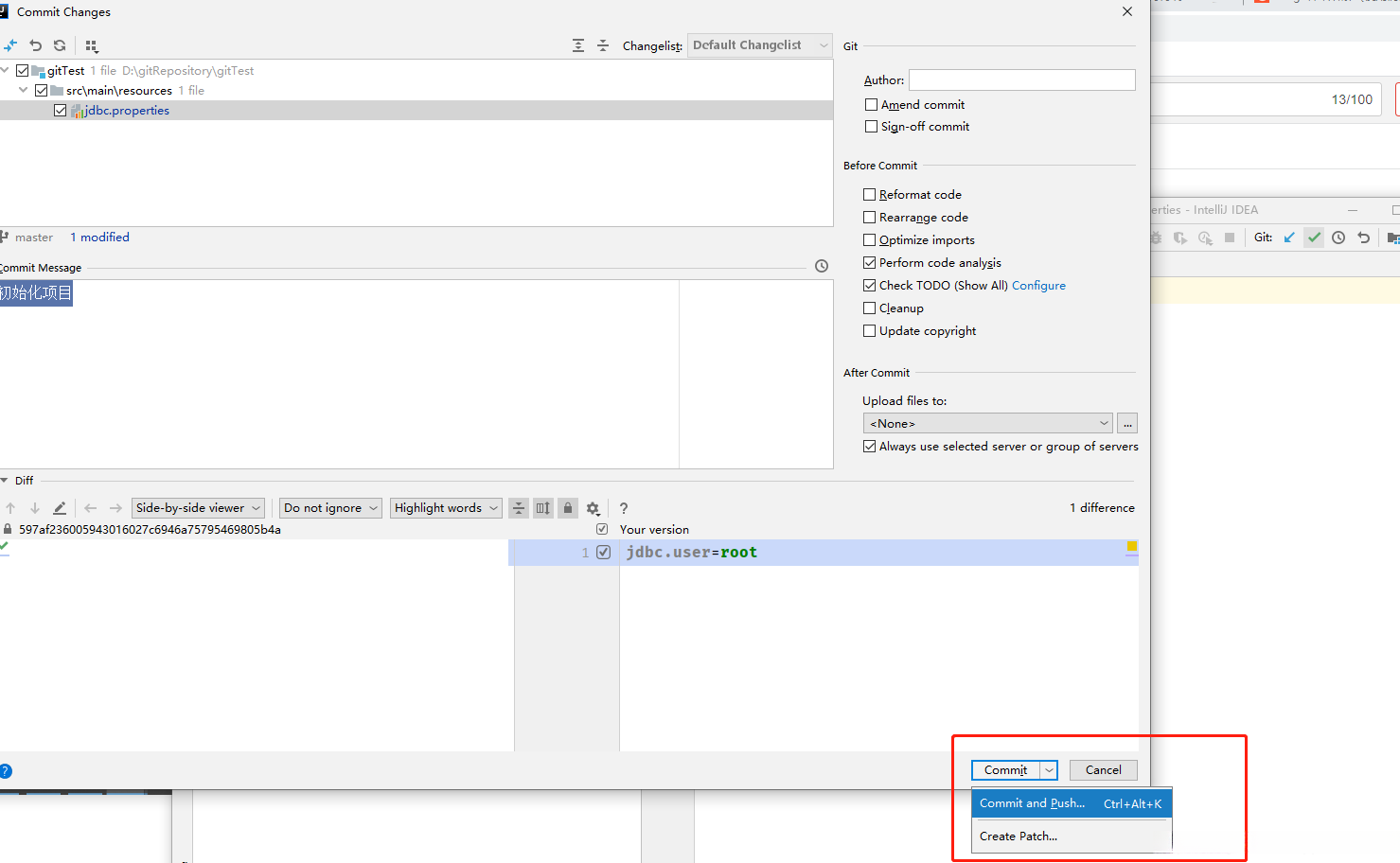 请注意,在大多数情况下,并非所有文件都需要将项目归档到暂存区;实际上而言,并非所有文件都需要将.idea和gitTest.iml配置为不提交。