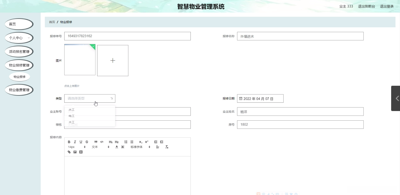 【附源码】计算机毕业设计智慧物业管理系统java+springboot+mysql+mybatis+论文)