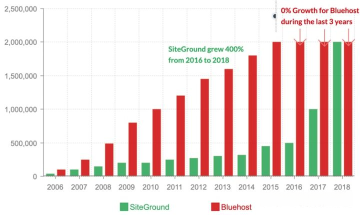 2.受欢迎程度– SiteGround在过去5年中将客户群扩大了四倍。