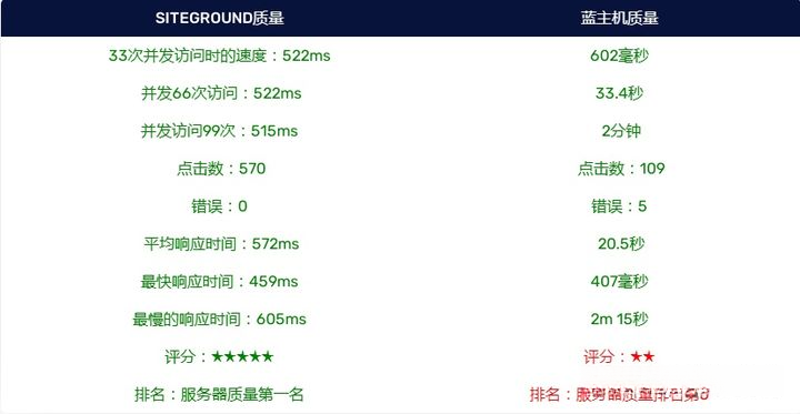 这些数据的对比分析结果表明, 从结果可以看出, Siteground 被认为是最好的最佳服务器吧!