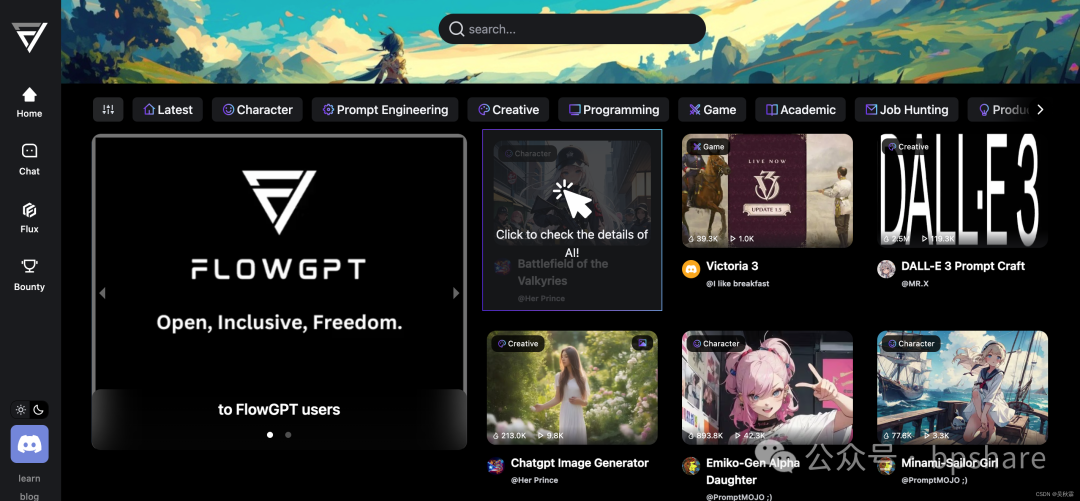 FlowGPT致力于为用户提供一个专业的平台以分享ChatGPT相关的指导问答模板。在此平台上用户不仅可以查阅丰富的由FlowGPT社区成员上传的相关指导问答模板还可以探索当前最热门且实用的提示词库