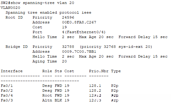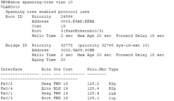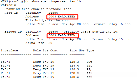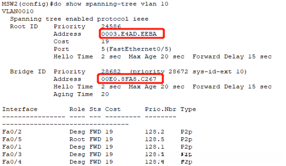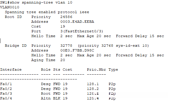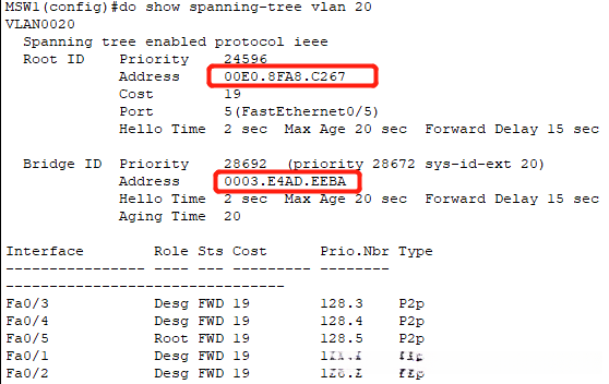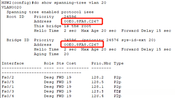 在MSW1、MSW2、SW1-SW4中分别查看其生成树