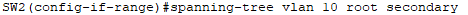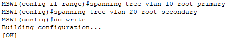 在vlan10中 指定为根桥 20中指定为备份根桥 并保存