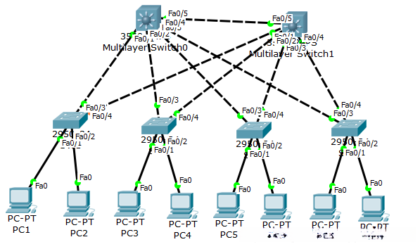 PC1 ping PC5同一vlan中的主机 跨域其他交换机能通信