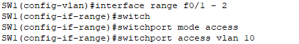 把接口f0/1 f0/2指定为二层访问接口 并划分到vlan10
