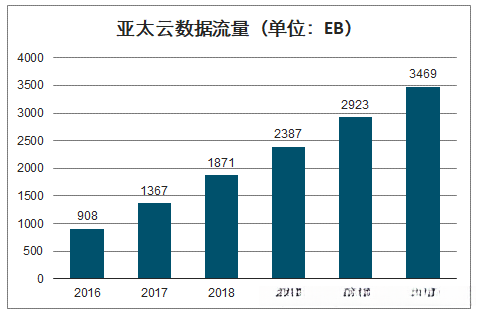 数据显示,亚太地区云数据量自2016年的908EB增至至2019年的2387EB水平,预计到2021年将再攀升至3469EB。
