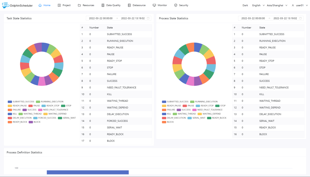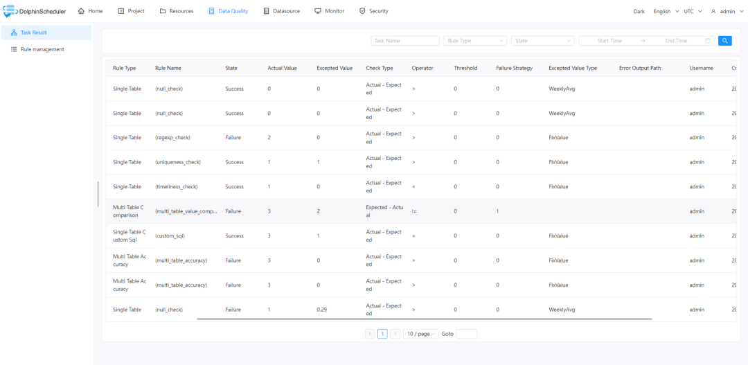 此版本中,用户们从 2.0.0 开始就期待已久的数据质量保证应用功能上线,解决了从源头同步的数据条数准确性,单表或多表周均、月均波动超过阈值告警等数据质量问题。Apache DolphinScheduler 此前版本解决了将任务以特定顺序和时间运行的问题,但数据运行完之后对数据的质量一直没有较为通用的衡量标准,用户需要付出额外的开发成本。