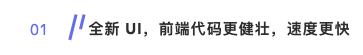 **更快:**重构了 UI 界面,新 UI 不仅用户响应速度提高数十倍,开发者构建速度提高数百倍;