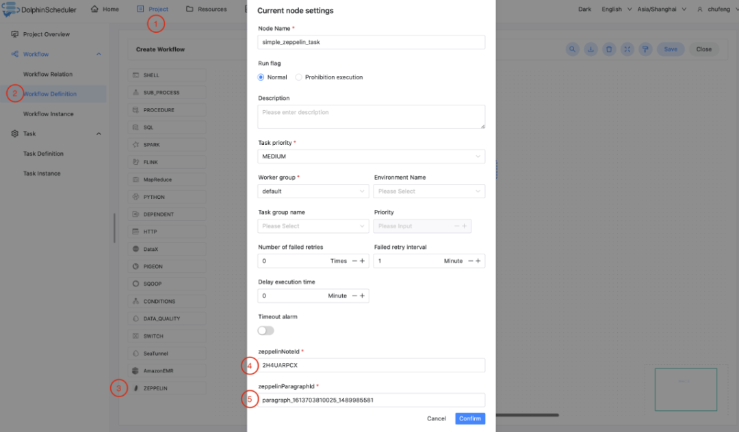 在该版本中,我们增加了 Zeppelin 任务类型,用于创建并执行 Zeppelin 类型任务。Worker 执行该任务时,会通过 Zeppelin Cient API 触发 Zeppelin Notebook 段落。