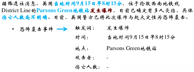 从自然语言中抽取出用户感兴趣的事件信息,并以结构化的形式呈现出来,例如事件发生的时间、地点、发生原因、参与者等