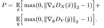 训练判别器D时,梯度惩罚项P将被添加到损失中,其具体定义如下: