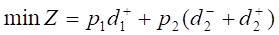 9. (单选题)要求不超过第一目标值、恰好完成第二目标值,目标函数是_____