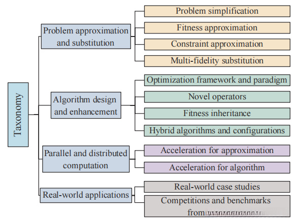 当评估候选解的计算成本较高时,可以使用并行和分布式技术来加速优化和降低计算时间成本。现有的相关工作大致可以分为两类,即加速近似和加速优化。