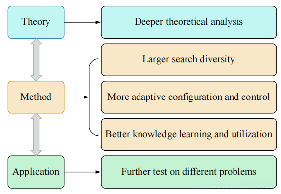 - 知识的学习和利用 :昂贵的适应度评估对从问题中获取有用的知识和信息以改进搜索过程提出了巨大挑战。因此考虑采用先进的知识学习和利用方法来改善进化计算将是一个很有吸引力的问题,比如小样本学习,自监督学习,以及从相关问题和场景中进行知识迁移。
