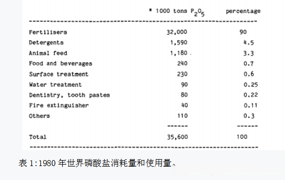 磷酸是一种重要的化工中间体。它主要是用于制造肥料,如表1所示。