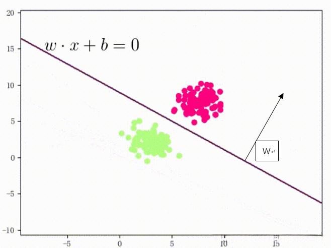 超平面S将特征向量分为两部分,分别称为正、负两类。