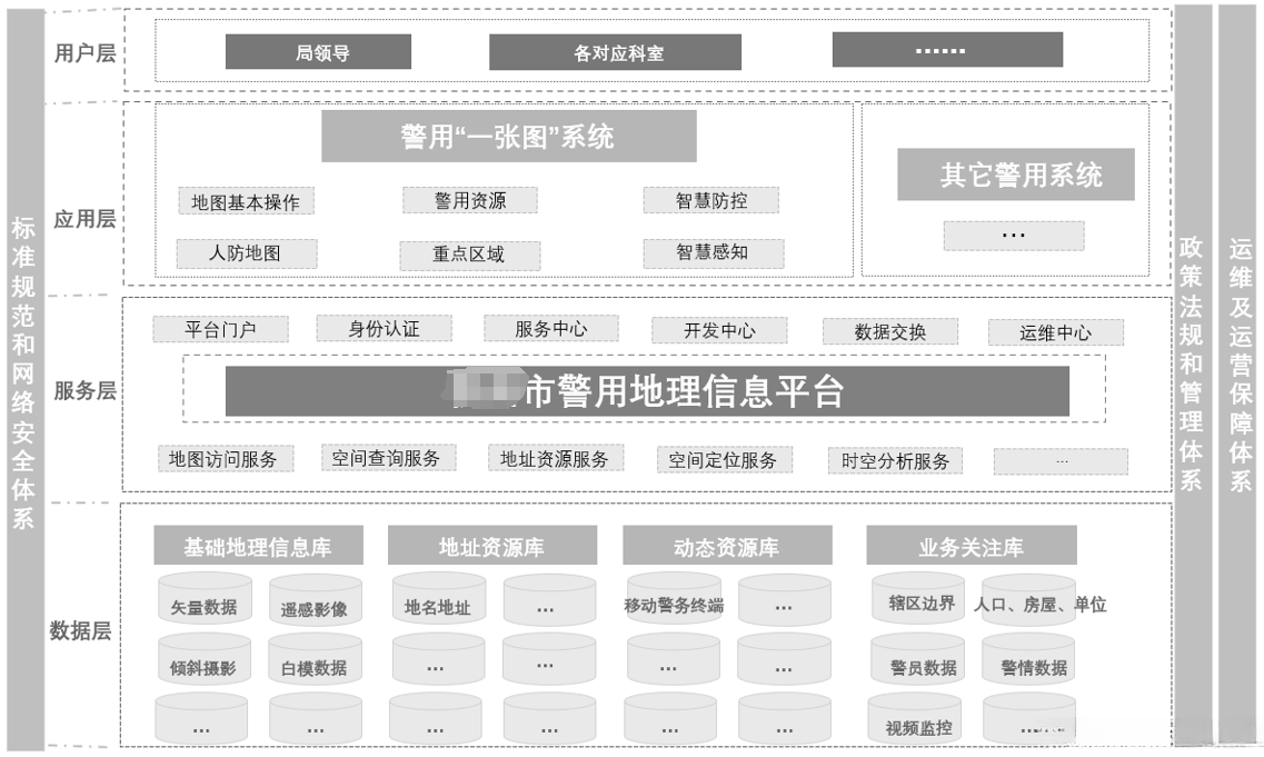 市警用地理信息平台采用公安专网进行数据传输,市、县、乡三级公安部门通过专网方式接入,网络带宽需充分满足市、县、乡三级公安部门数据传输、功能应用的需求。