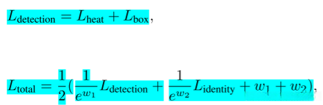 分别学习热图损失、框大小损失、偏移损失和重新 ID 损失的四个参数。