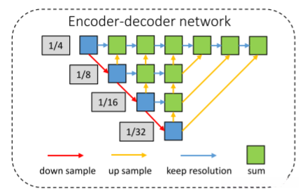 编码-解码网络采用了一种层级结构,特征图从粗到细逐层提取