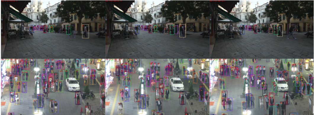 在实际场景中进行多目标跟踪时,在每一帧中模型都会更新目标的位置与特征参数,并完成这一过程以实现持续追踪。