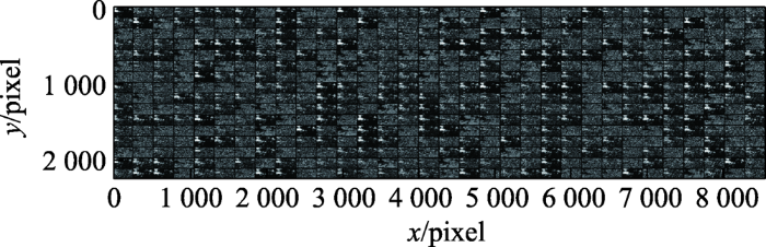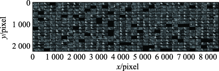 ASPPAM结构将深度神经网络的部分卷积层替换成空洞卷积,在不增加参数的情况下,扩大了感受野的范围,从而获取了更多的特征信息。1×1卷积的目的是防止空洞率过高导致卷积核参数无法完全利用的问题。针对空洞卷积带来的空间信息丢失问题,DeepLab-v3采用了引入解码器结构以恢复目标的空间信息。由于空间信息的丢失不利于像素级的分类任务,本文在提取特征的并列结构上增加了上下文注意力模块来解决这一问题。在ASPPAM模块中,空洞卷积的作用是获取不同尺度的上下文信息。原始图片如图2所示,其大小和通道数分别为(1024, 2048)和3。经过ResNet-101提取的高级特征图可视化后,高级特征图的大小和通道数分别为(128, 256)和512,其横纵坐标为分辨率,高级特征的通道可以被看作特定类别的响应。将高级特征图可视化为512张单通道图片,图3显示未使用ASPPAM模块时的高级特征图,其中部分特征图因丢失像素严重或相关类别像素缺失导致提取特征为空,表现为可视化结果为黑色,这不利于后续的像素预测任务。图4展示了使用了ASPPAM模块后的高级特征图,相关类别的特征更加集中,特征为空的现象显著减少(黑色特征图),丢失像素的问题得到了有效解决。从图4可以看出,所提出的ASPPAM模块确实发挥了作用。SENet[21]通过学习特征权重并采用点乘方式进行加权,同时利用池化操作传播注意力特征图,但忽略了像素自身具有一定的关系。