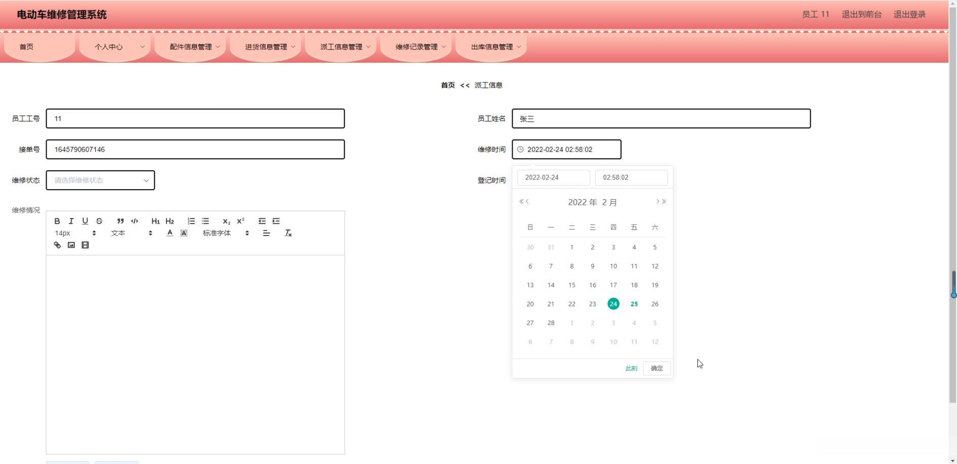 - 借助系统实现维修订单的接收与分配等核心环节,并追踪其进度以确保完成确认工作。