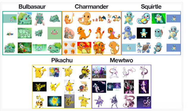 例如,图像中的大量红色和橙色可能会返回“Charmander”作为标签。同样,图像中的大量黄色通常会产生“皮卡丘”标签。