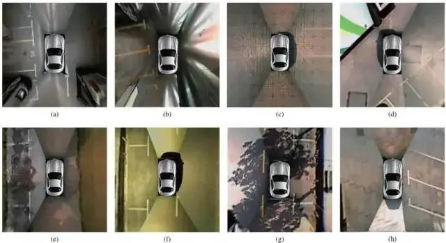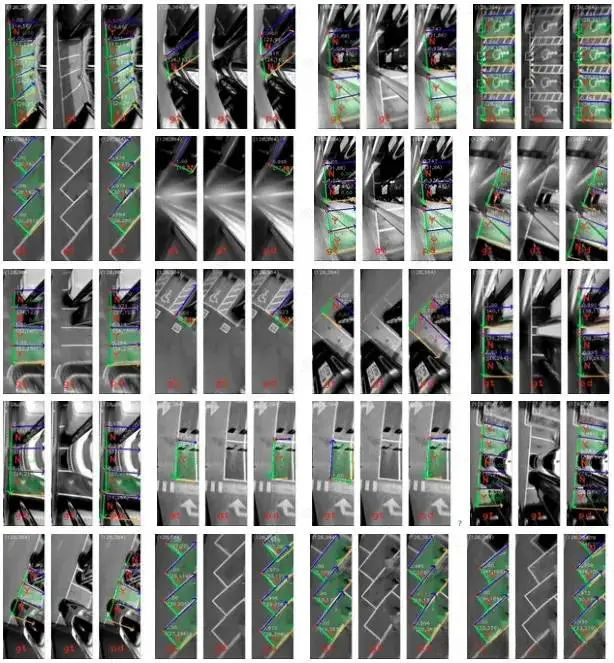 理性分析表明,在车位数据集日益复杂的背景下(尤其是依赖于对车位标线(常见白色线条)的分类与利用),这一特点注定了自动泊车算法对数据集的高度依赖性或受制性。一家车企若要维持其稳定运营能力(特别是在面对每年上百万辆汽车的需求并提供高质量自动泊车服务),其自动泊车系统的智能化水平必须具备极强的能力——不仅要在保证正确结果的基础上实现高度稳定性运行,并能在各种异常情况下有效应对可能出现的问题。然而,在实际应用中由于各种限制因素(如AVM成像质量),即使能够获得正确的检测结果也会存在局限性:例如,在鱼眼相机拍摄导致畸变矫正插值本就成为AVM系统面临的一个挑战(毕竟这涉及到复杂的数学运算和图像校正过程)。此外,在实际场景中由于光线条件、地面反光等因素的影响(这些因素在经过畸变插值后仍然存在显著干扰),纯文本特征提取往往难以达到预期效果——这也是为何很多系统采用基于bounding_box的数据训练策略来提升检测精度的原因所在。