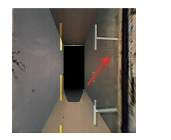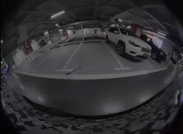 通常配置有四组鱼眼摄像头:前后左右各一组。这些设备主要用于采集周边环境的画面信息。如图所示的是右侧摄像头捕捉的画面。其获取的照片通常不直接用于停车位识别,但可用于后续进行障碍物探测。