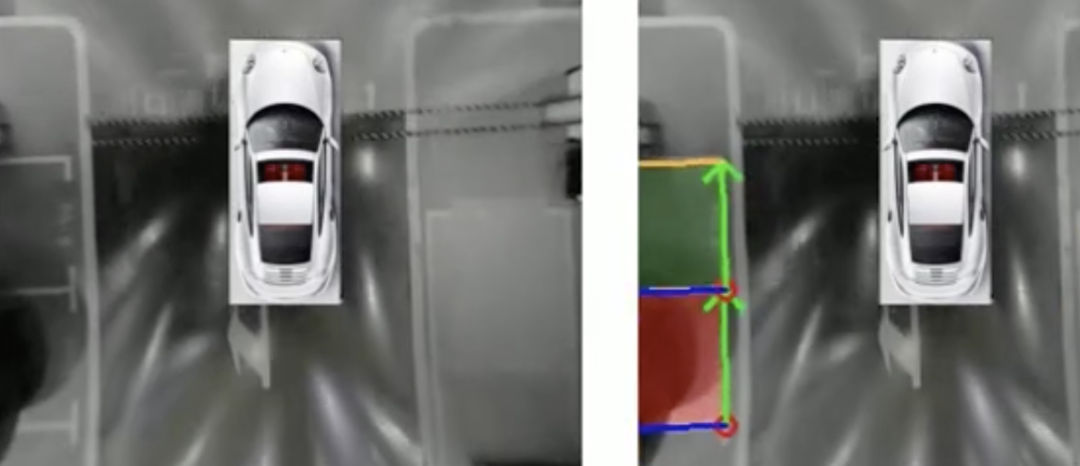 这是AVM成像所导致的不可避免的问题之一——畸变现象。然而,在深度学习方面展现出强大的优势在于:我们的人眼会将它识别为一个停车位;不要被图像本身的表象所迷惑!深度学习能够从图像中提取特征;但这种能力需要进一步深化——从图像中提炼出更高层次的人工推断抽象特征;这些特征并非表面可见、非显式的、非符合逻辑或是错误信息所带来的误导信号;而是需要深度学习去主动学习并掌握这些关键点;这个时候就需要运用目标检测、语义分割等技术手段;虽然这些方法看似存在局限性——仅凭图像表面信息(如畸变车辆或变形柱子)可能难以覆盖多个车位的遮挡情况;但我们必须保持清醒:停车位辨识应该基于真实的物理特性而非单纯的像素分布模式。