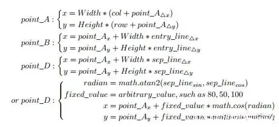 这里所指的停车位角点,并未暗示其为图像中必然存在的停车位角点。进入线与分隔线也并非图像中真实存在的直线或曲线。我们的目标是建立一种抽象化的数学几何模型。