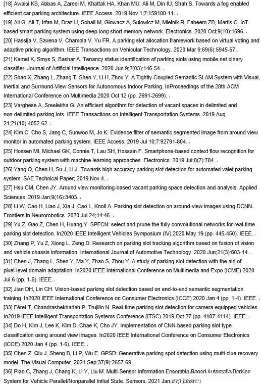 但是可用于深度学习参考的是:首先包含关键点识别;其次是边缘检测;接着是去噪处理以及配对优化;然后是基于前后帧信息结合分析车辆运动轨迹的方法;之后采用俯视图视角下的数据处理以简化计算复杂度;此外还涉及各类停车场景类型划分以及基于特征的关键点与边缘分类方法;最后还包括穷举法的应用策略
