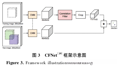 相关滤波器( correlation filter,CF) 通过学习一个具有区分力的滤波器来处理待跟踪的图片,其输出结果为一个响应图,表示目标在后续帧中不同位置的置信度.